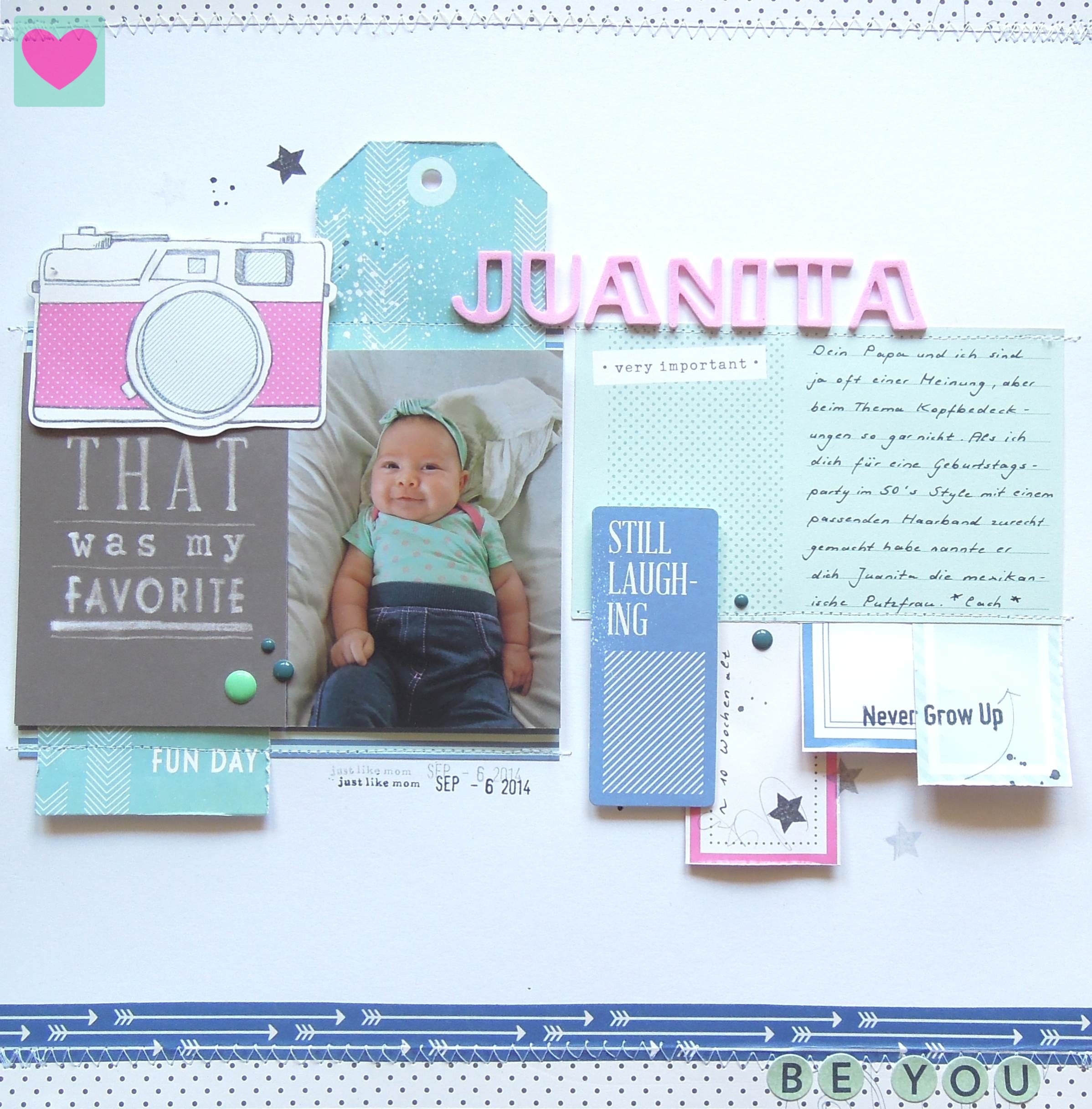 Wenn Mama und Papa sich über Kopfbedeckungen für das Baby nicht einig sind dann kommen solche Sachen dabei raus. Gregor nannte unsere Kleine Juanita, die mexikanische Putzfrau, als ich sie für eine Geburtstagsparty im 50`s Style mit passendem Haarband zurecht gemacht habe. Lina fand es wohl auch zum lachen…