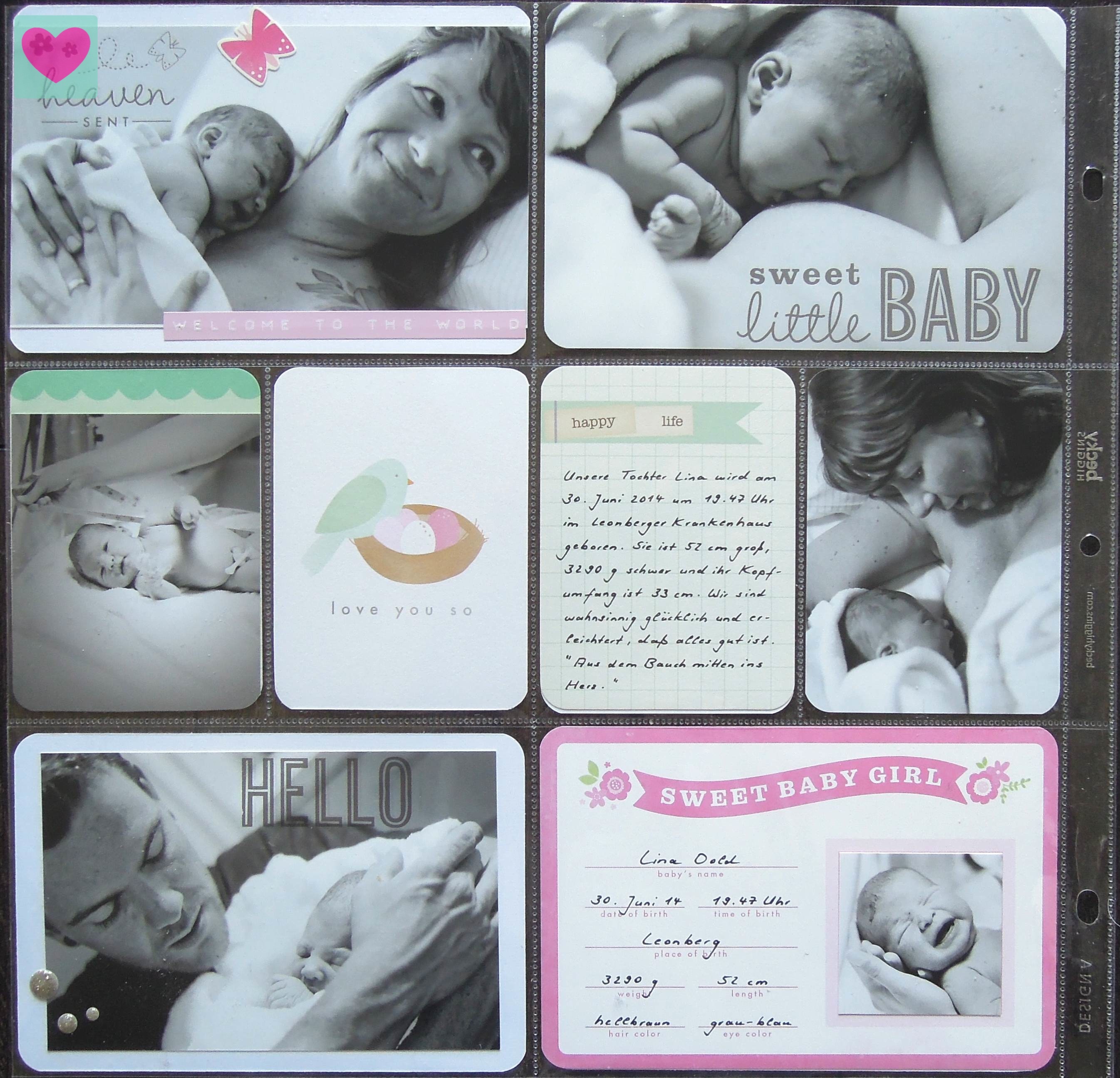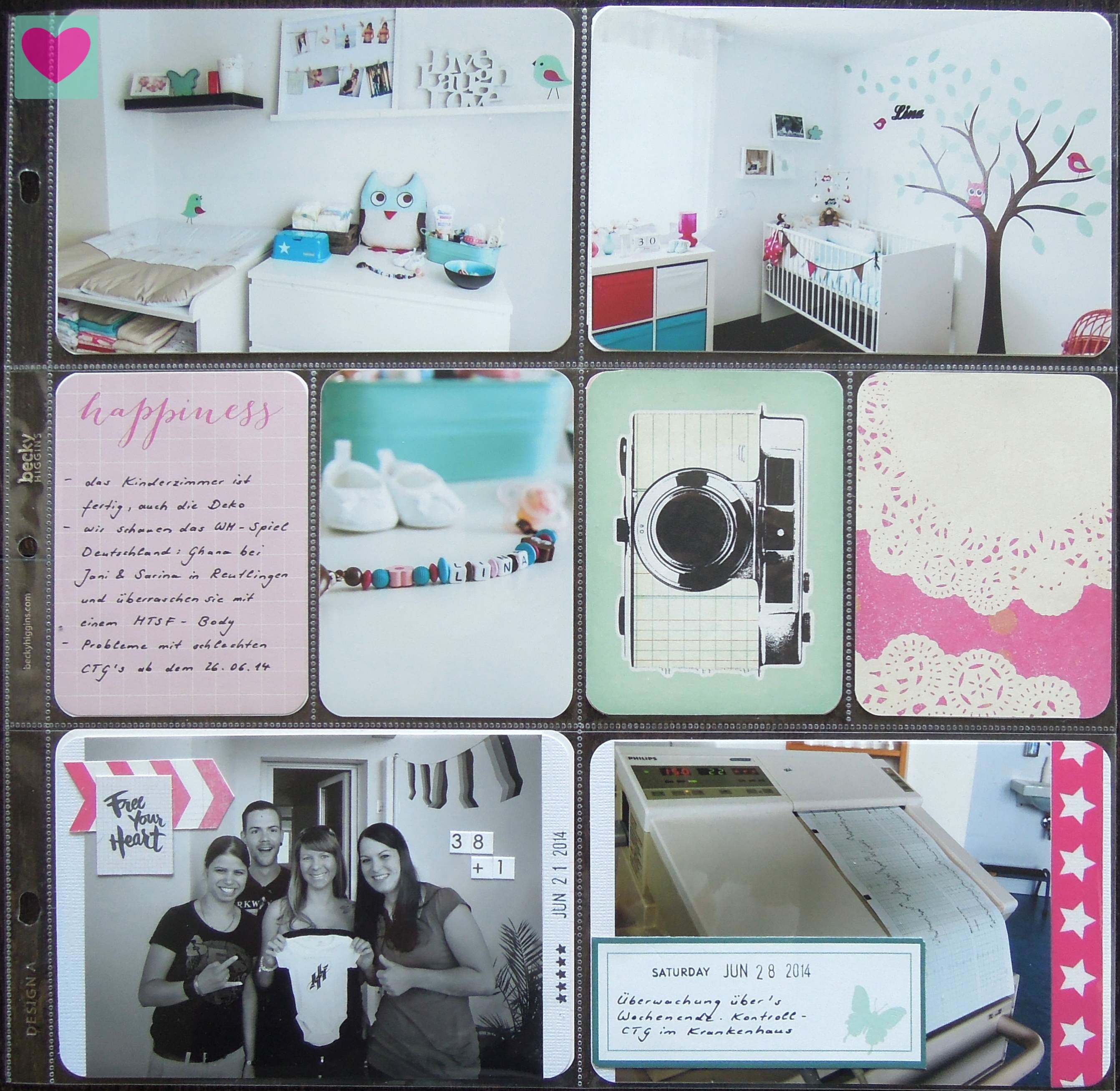 Hier kommt also der Juni 2014. Hochschwanger ein eher ruhiger Monat und viel habe ich ja auch schon in mein Schwangerschaftsalbum gepackt. Der Abschluss war aber wohl der Schönste, den man sich vorstellen kann. Die Geburt von Lina.