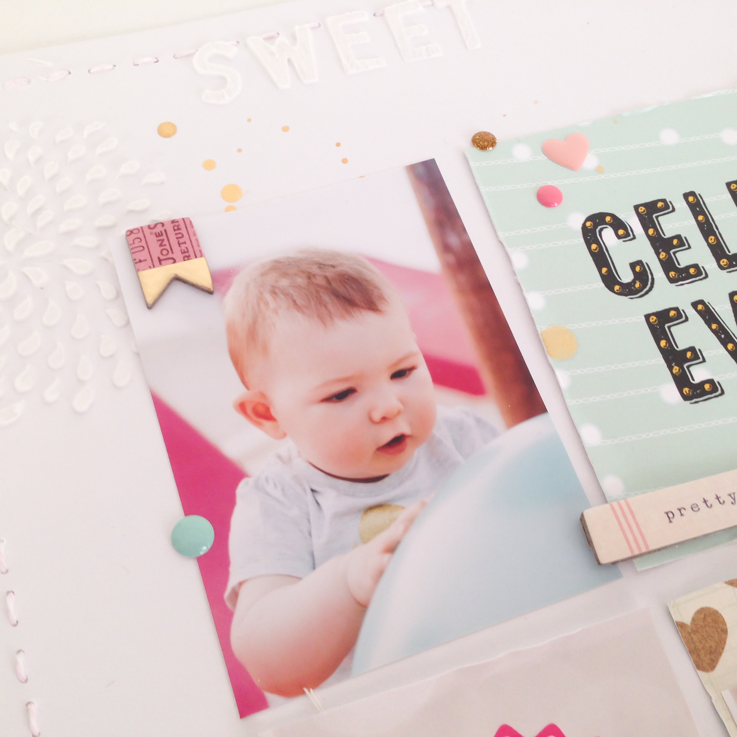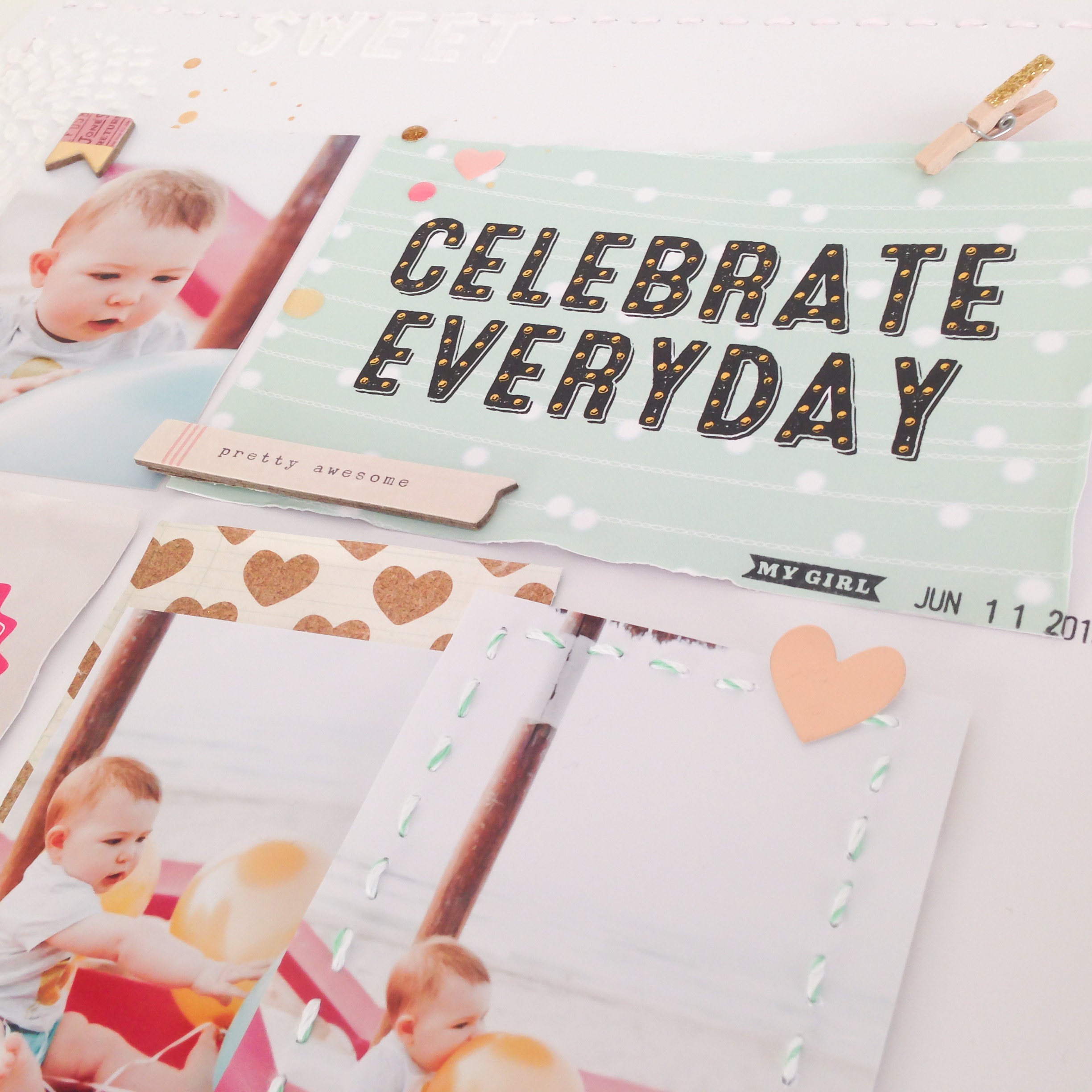 heute möchte ich euch meine Umsetzung vom Sketch des Monats der Scrapbook Werkstatt zeigen. Die liebe Nicole hat sich einen Sketch mit 3 Fotos ausgedacht. Das fand ich besonders toll, weil ich vom Urlaub einige Fotoserien habe. Diese Fotos von Lina mit den Luftballons am Strand haben perfekt zu dem Storyteller Card Sheet I Papier von Webster´s Pages der Happy Kollektion gepasst. Ich habe mal wieder mit Masks und weisser Strukturpaste gespielt und ein paar Elemente auf das Layout gestickt.