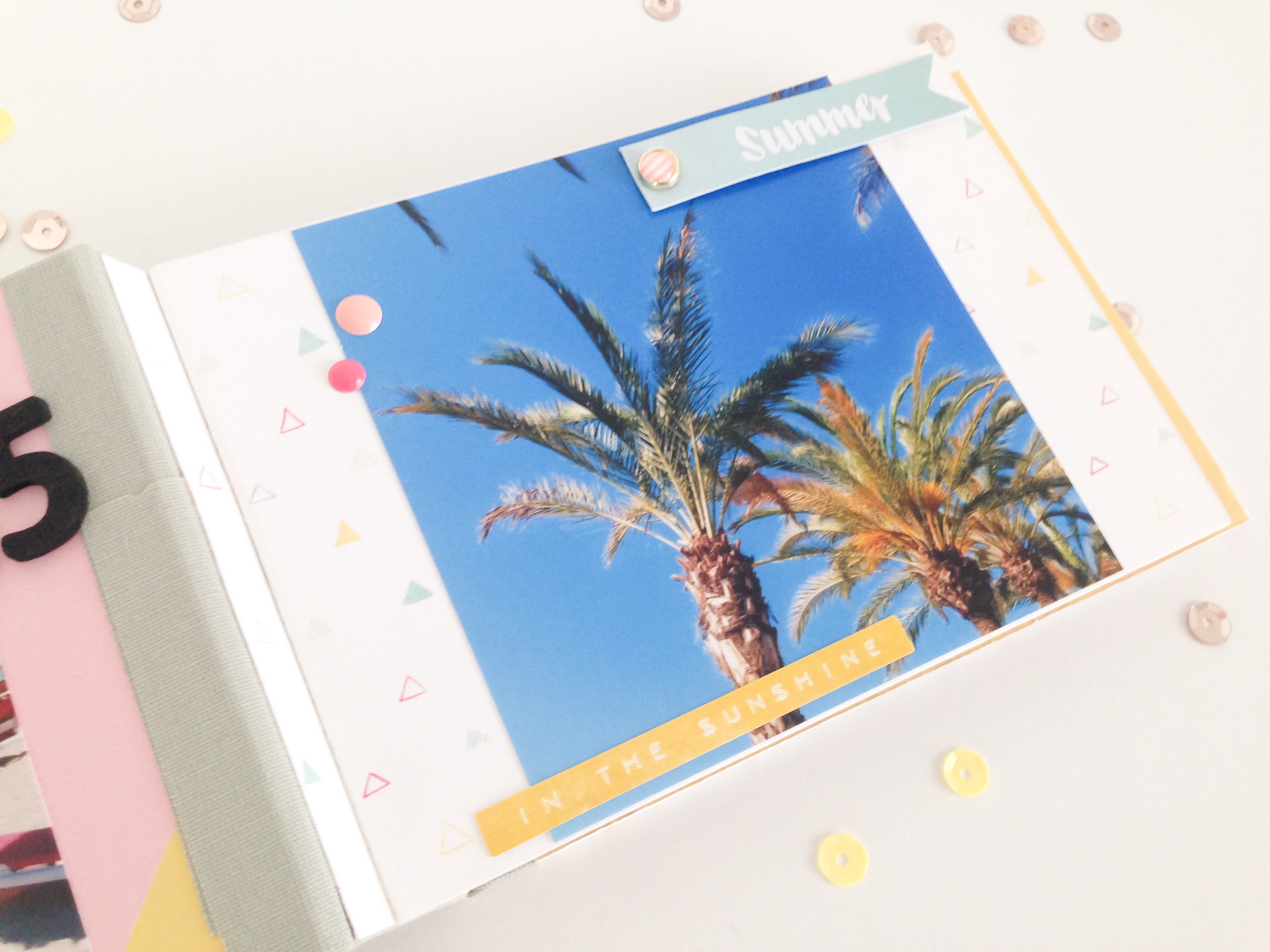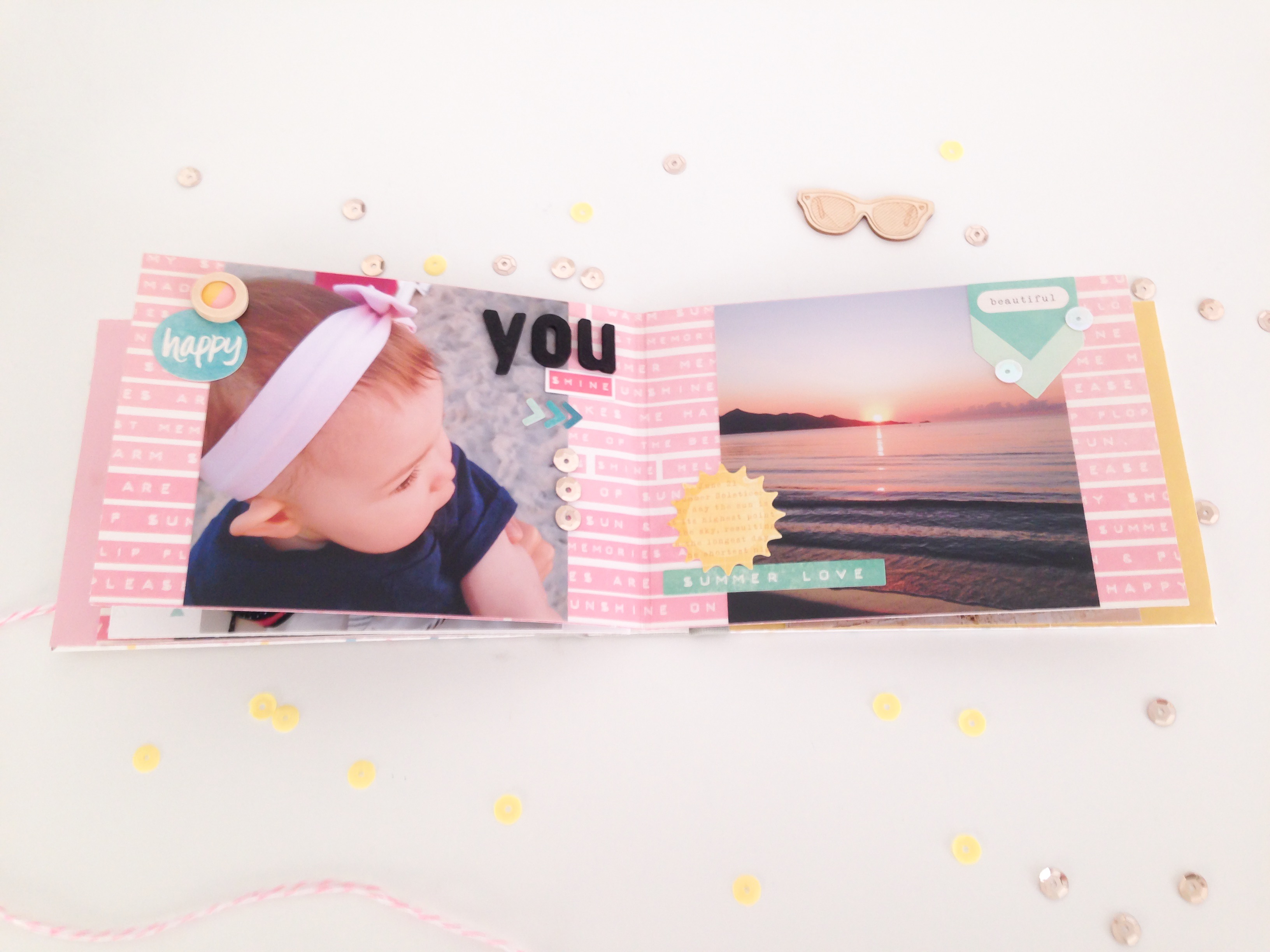 Verwendet habe ich dafür die wunderschöne Poolside Kollektion von Crate Paper. Die Papiere und Embellishments könnt ihr ebenfalls bei der Scrapbook Werkstatt finden.