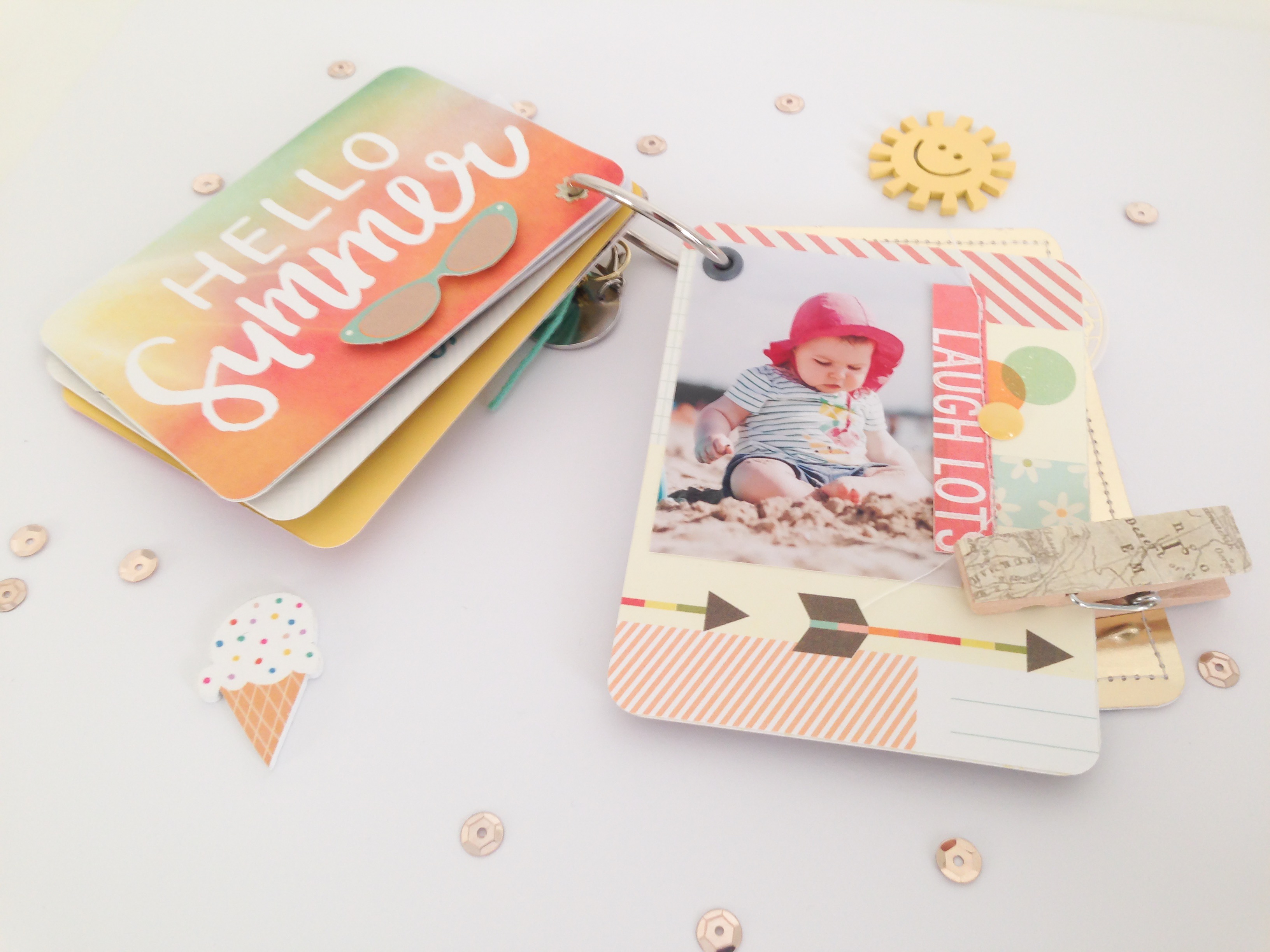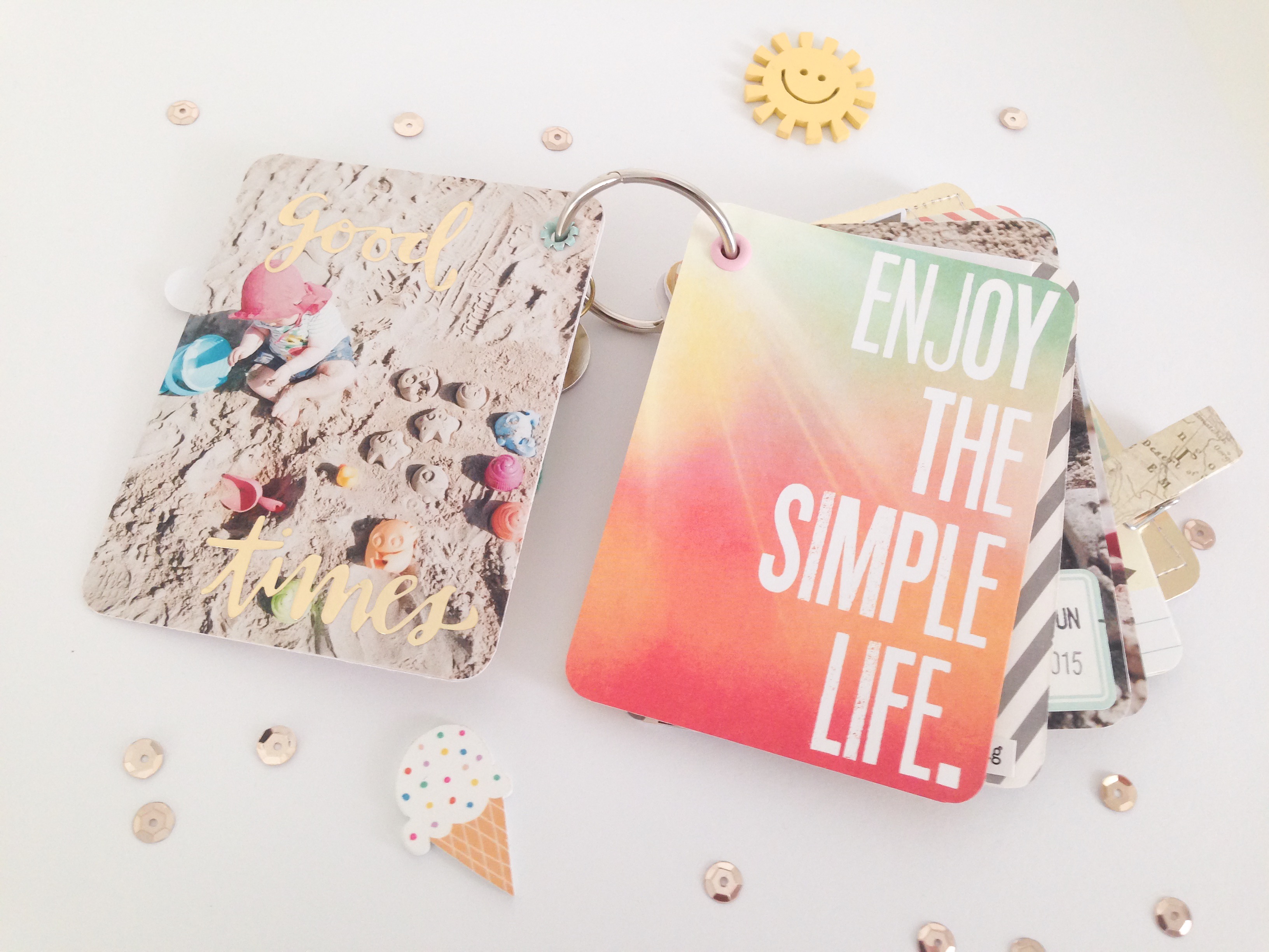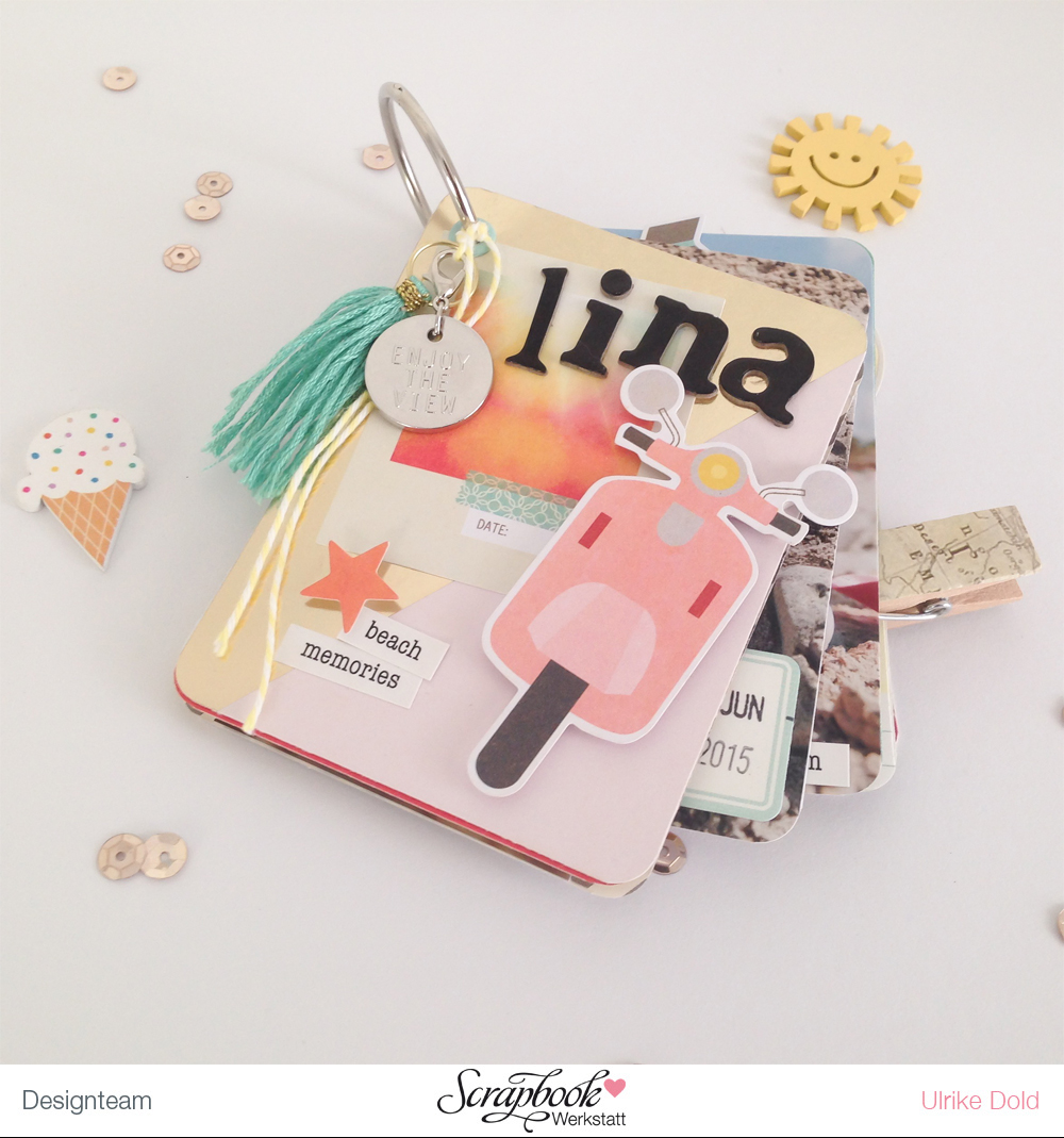 Heute mag ich euch das Mini Book zeigen, welches mit dem August Kit „Rund um die Welt“ entstanden ist. Eigentlich wollte ich gar kein Mini mehr damit machen, aber ein ganz einfaches mit einem Buchring geht irgendwie immer. Im Urlaub sind superviele schöne „Sandelbilder“ von Lina entstanden und diese Bildreihe wollte ich gerne gesammelt unterbringen. Und die 3×4 Karten von Simple Stories, Teresa Collins und October Afternoon, die im Kit enthalten sind, haben sich super dafür angeboten.