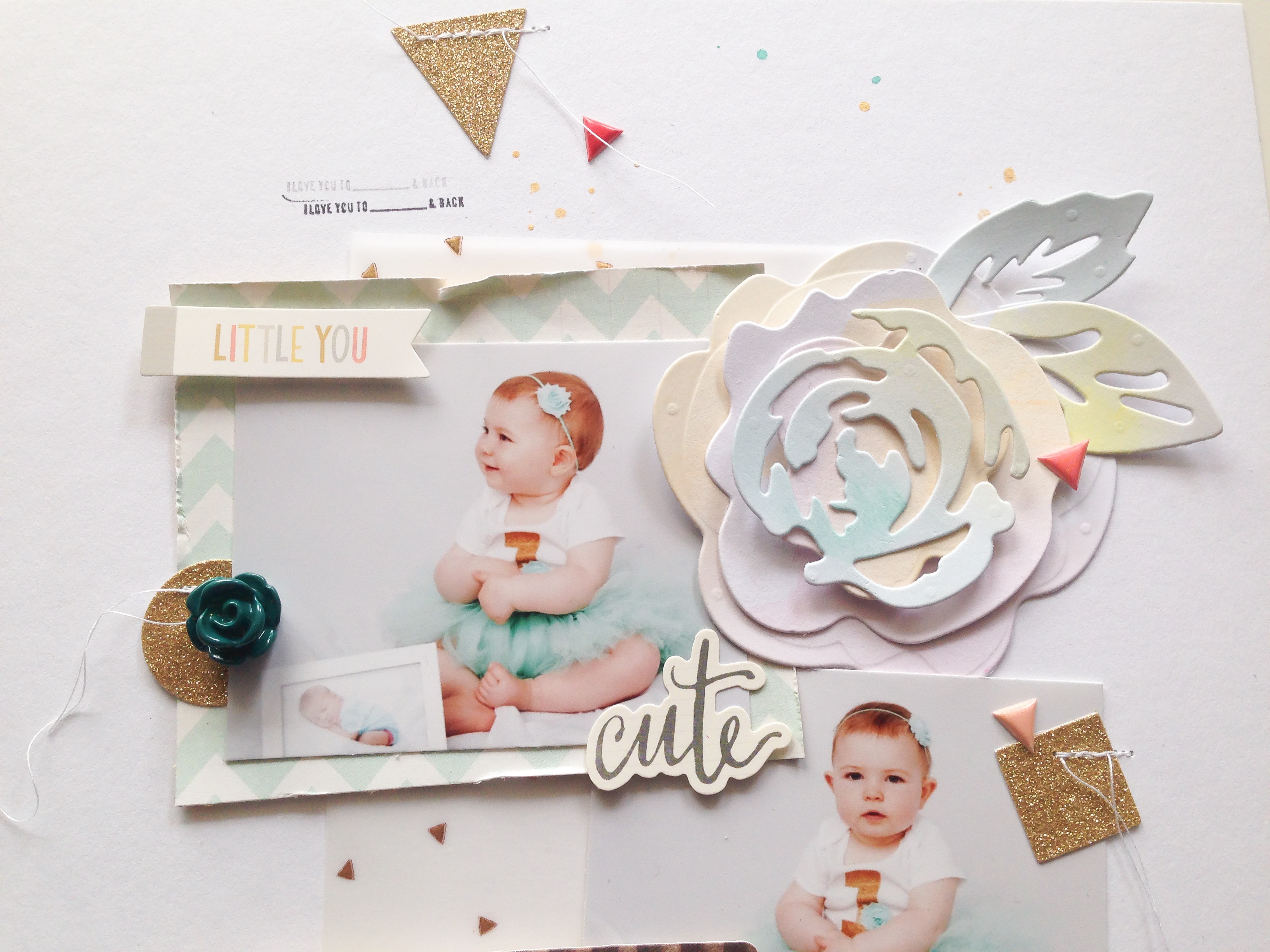 Detailfotos gibt es natürlich auch jede Menge für euch. Ich habe die wunderschöne Blumenstanzform der Confetti Kollektion verwendet und selbst mit Wasserfarben eingefärbtes Papier gestanzt. Ohne Wasserfarben geht zur Zeit bei mir ja nichts… ich mag den pastelligen Look so gern.