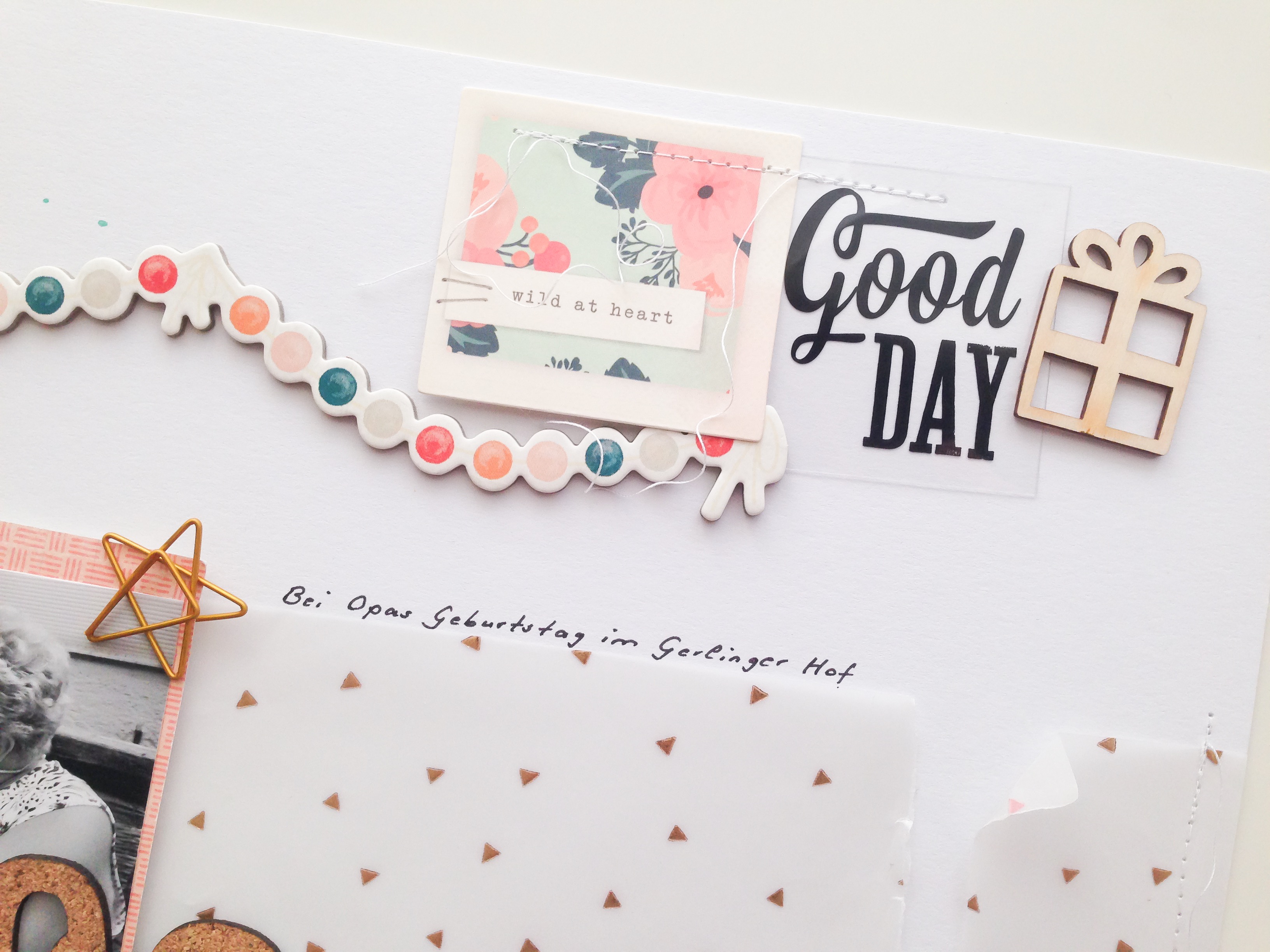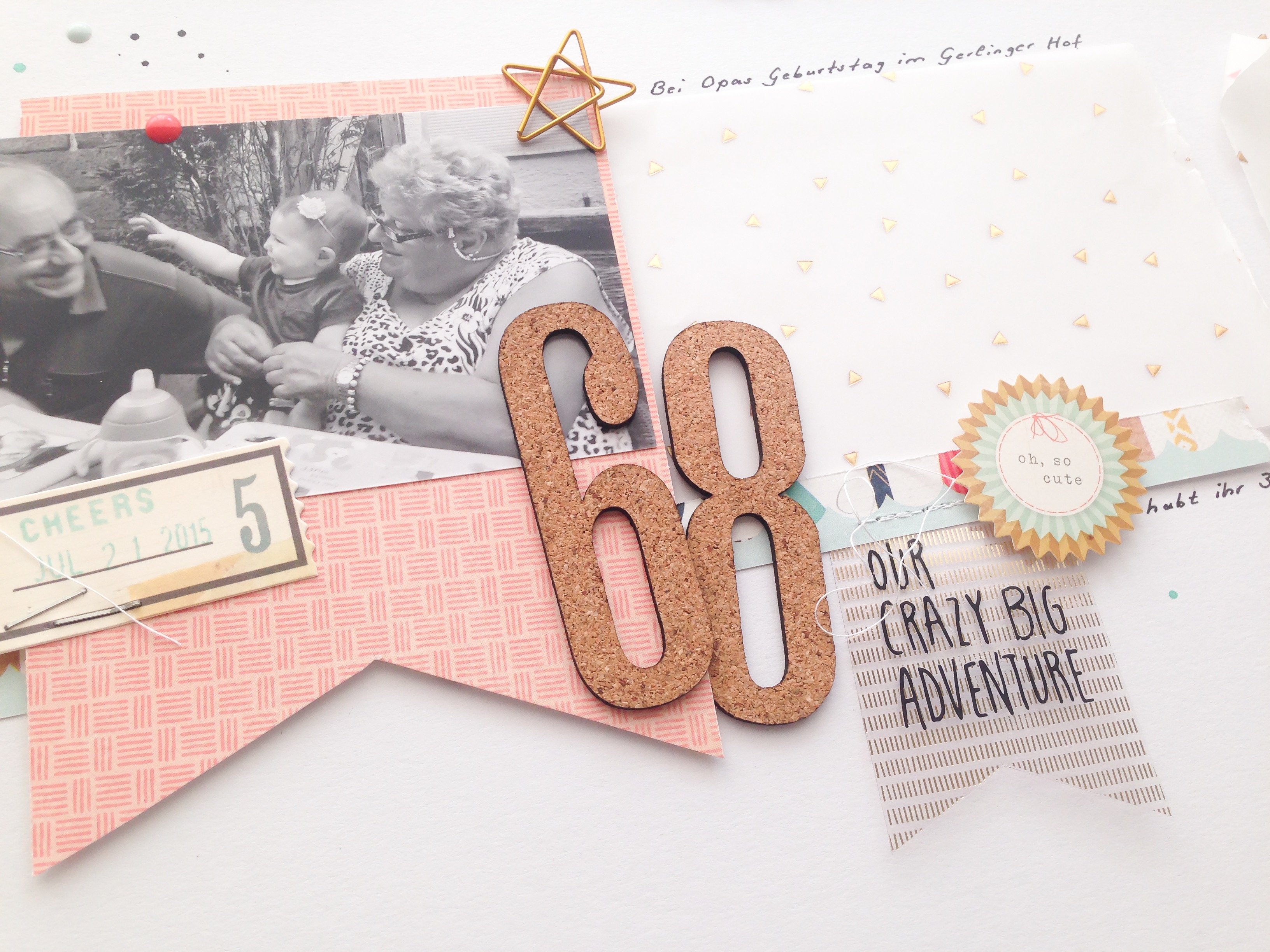 Ich habe ein Foto vom Geburtstag meines Papas im Juli verscrappt und wieder einmal die wunderschöne Wonder Kollektion von Crate Paper benutzt mit der ich dank der Scrapbook Werkstatt spielen darf.