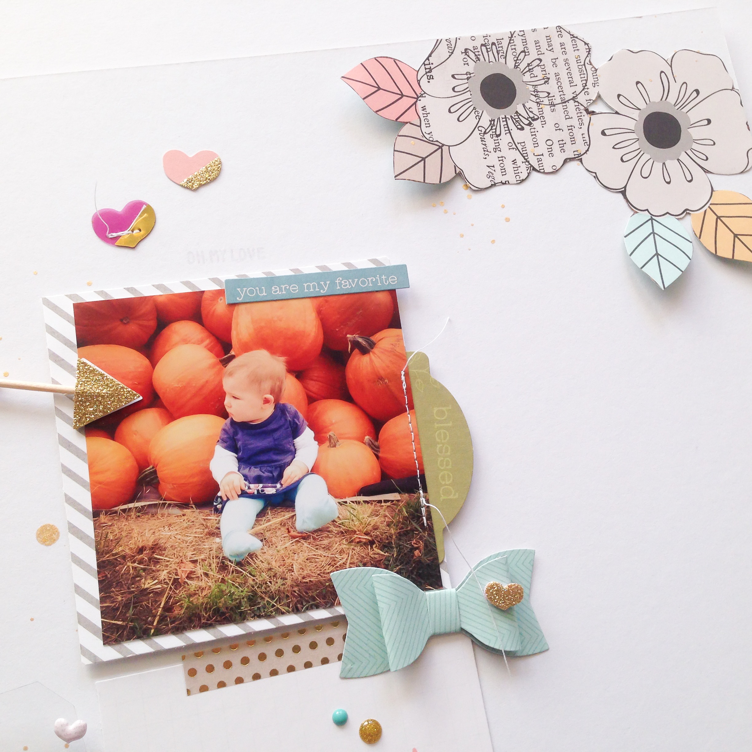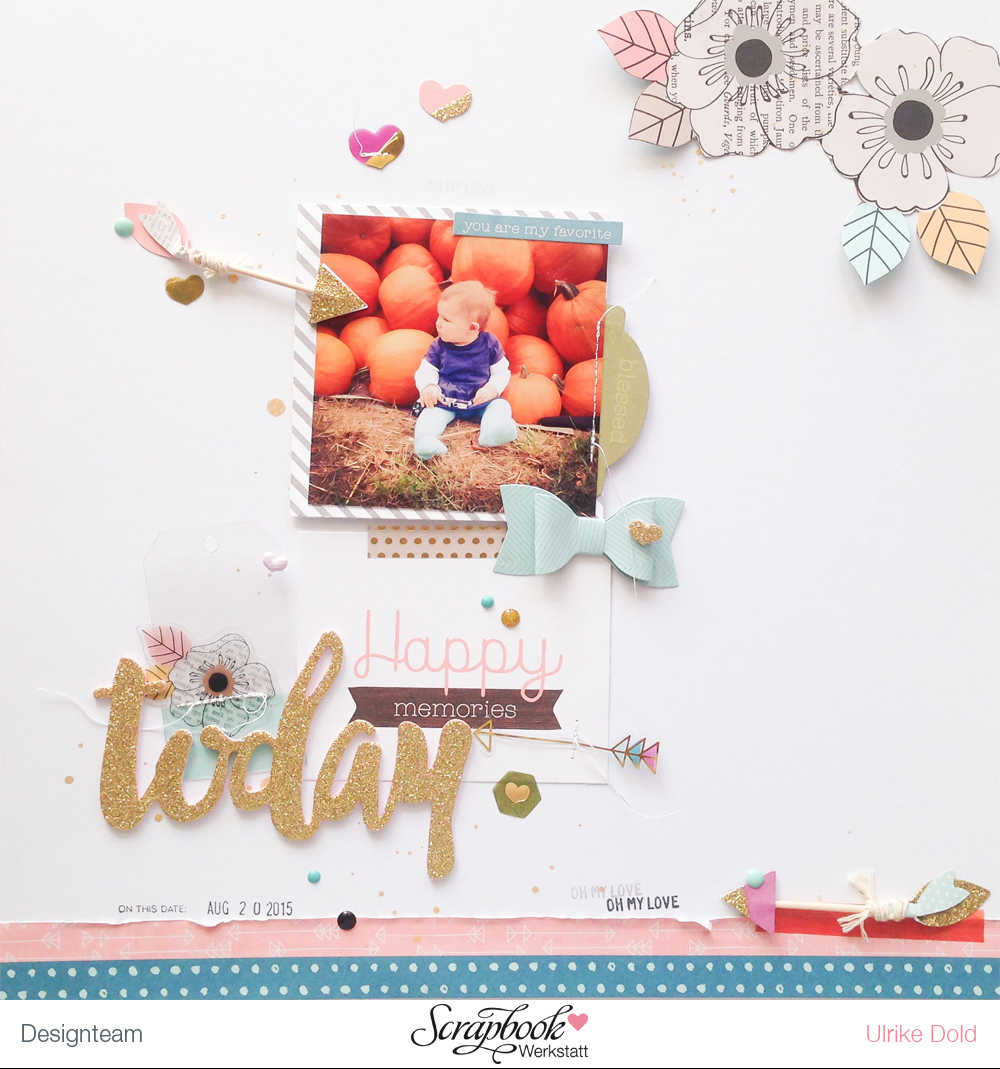 Das Foto ist Ende August auf einem Feld entstanden wo Kürbisse zum Verkauf angeboten werden. Ich finde es unheimlich süß. Farblich hat es super zur Kollektion gepasst und ich wußte gleich, dass ich das mit diesen Papieren verscrappen möchte.